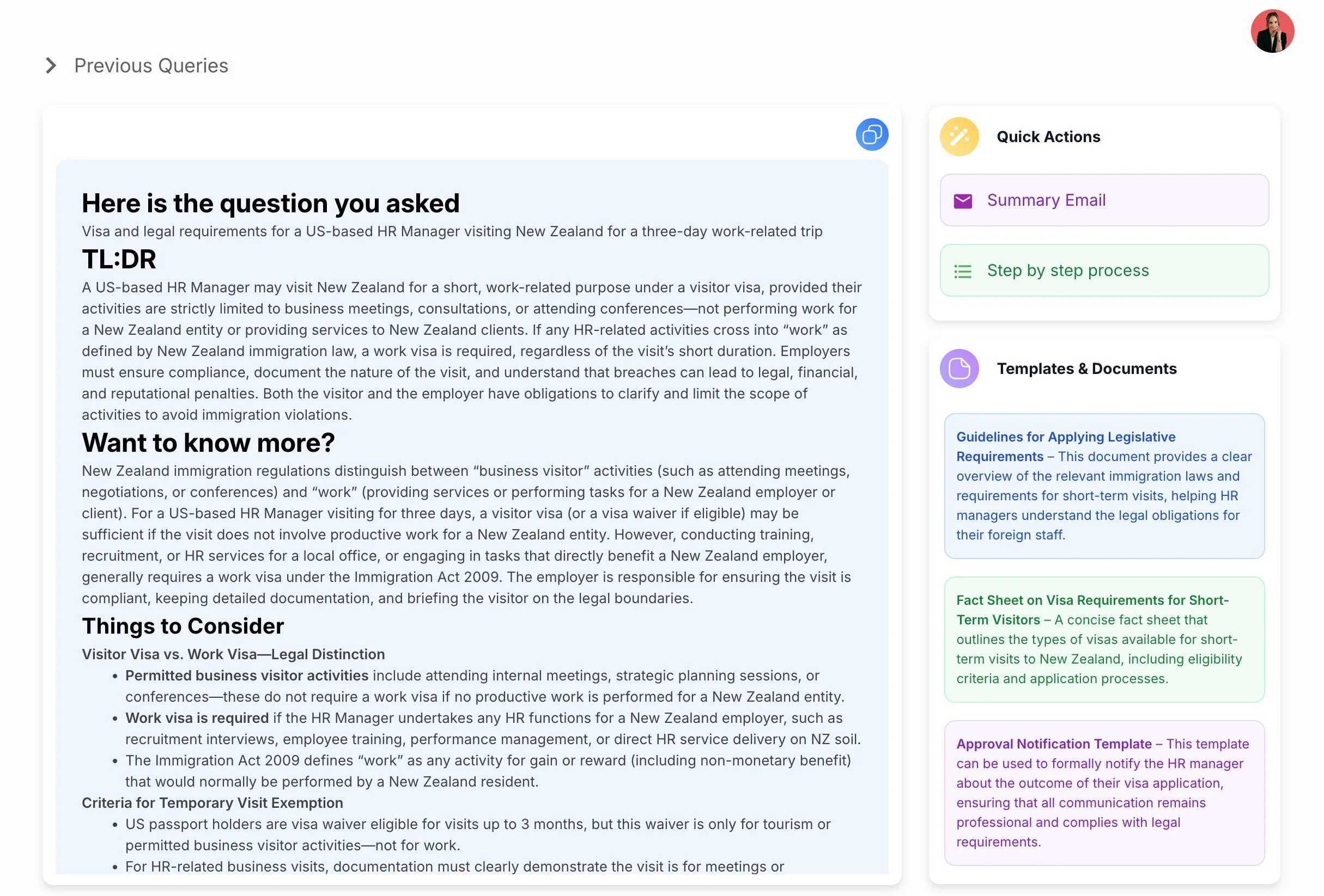 Mak checks your HR questions, explains your risks, gives you the steps to fix them, and shows clear next steps so you’re never caught off guard.